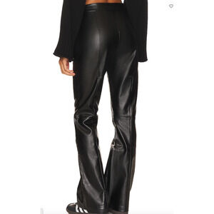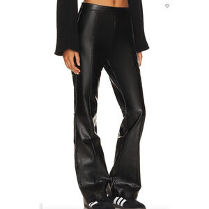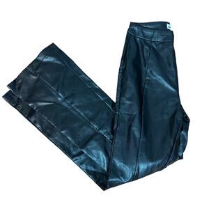 Superdown Black Faux Leather Flare Pants LARGE Wide Leg Trouser Revolve $78
