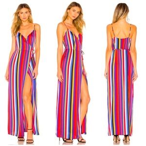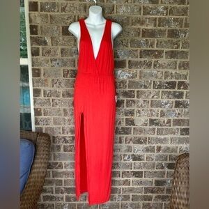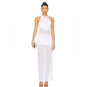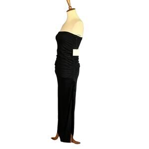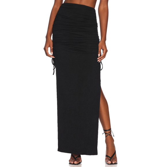 Revolve Superdown Black Ruched Maxi Skirt LARGE High Side Slits Domique NEW