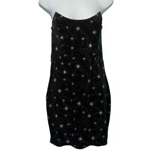 Superdown Black Silver Atomic Star Velvet Metallic Strapless Dress Sz M NEW Tags