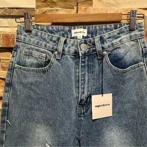 Chic blue denim jeans by Superdown. Perfect for everyday wear.