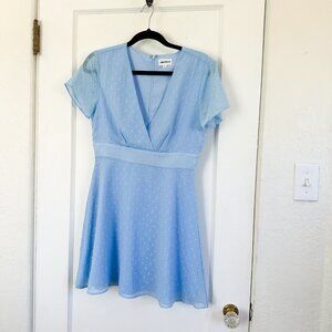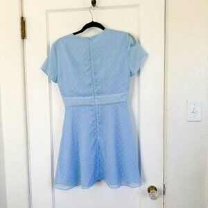 Superdown | Bree Polka-dot V Neck Short Sleeve Mini Dress in Blue Medium
