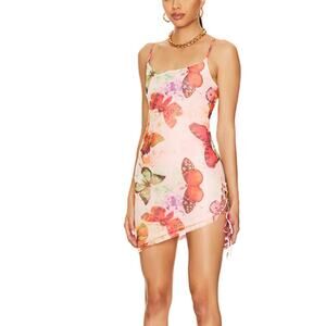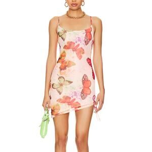 Superdown Butterfly Mini Slip Dress SMALL Bodycon Ruched Mesh Harlow $72 NEW