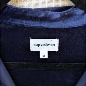 Superdown Collared Blue Velvet Long Sleeve Mini Shirt Dress, size M