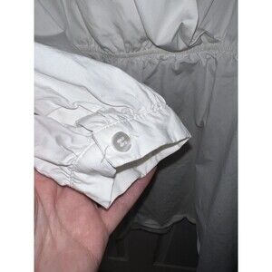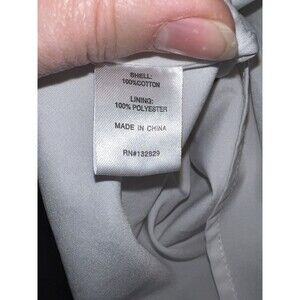***Missing the Belt 100% cotton Lining: 100% poly Hand wash cold Fully lined Poplin fabric Elasticized waist with buckle closure Buttoned cuffs Pit to pit 20 Shoulder to hem 32