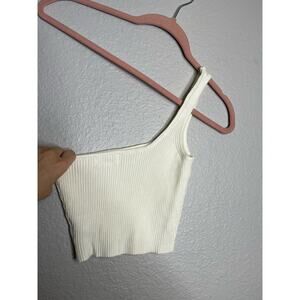 Superdown Ellie One Shoulder Ribbed Crop Top L