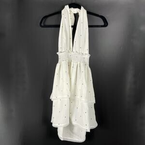 New Superdown Emilia Mini Dress White Polka Dot Halter Backless Sz XL Women's