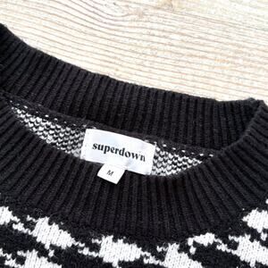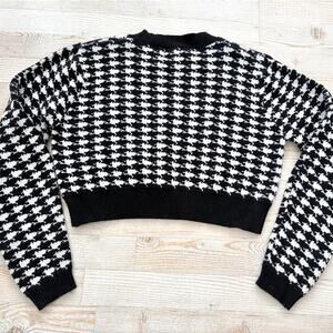 Superdown Felicity Houndstooth Cropped Crewneck Sweater | Black/White M