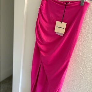 Chic fuchsia set with a trendy design. Includes a stylish top and matching skirt. Both pieces come with the set.