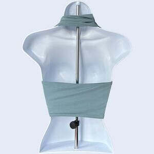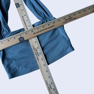 Trendy halter neck crop top in blue with fitted silhouette. Soft stretch knit fabric. Y2K revival. Solid color, smooth texture. Condition: Excellent, no flaws.