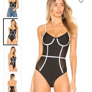 Superdown Harlow Bandage Mesh Bodysuit from revolve black white contrast