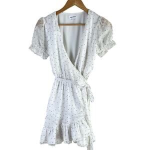 Superdown Jacelyn Wrap Mini Dress Ruffle Hem in White Black Polka Dots, Size XS