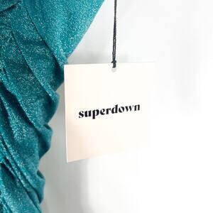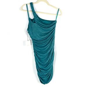 Superdown Jayden Mini Dress Blue Shimmer Asymmetrical One Shoulder Jersey Sz M