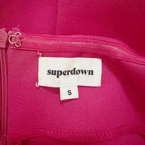 This striking pink bodycon dress from Superdown features a sleek strapless design and a subtle slit for added allure. Perfect for cocktail parties or a night out, its form-fitting silhouette and vibrant color ensure you stand out in any crowd. No wear or tear. Smoke free pet free home.