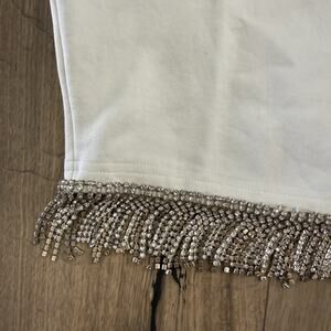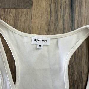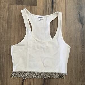 Superdown Madison Rhinestone Trim Tank in White Size Medium Cropped Racerback