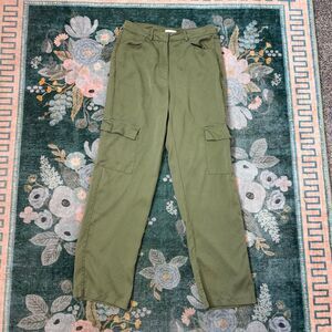Superdown Mae Cargo Pants Womens Small Olive Green High Rise Tapered Leg Tencel