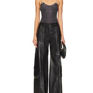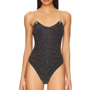 Superdown Metallic Chain Strap Bodysuit – Gunmetal Shimmer Top (Size S)