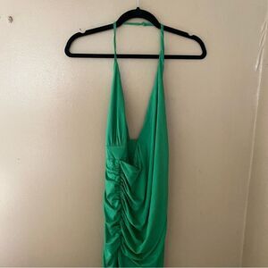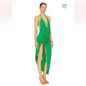 Superdown Mia draped slit dress midi slip bright green halter party Revolve S