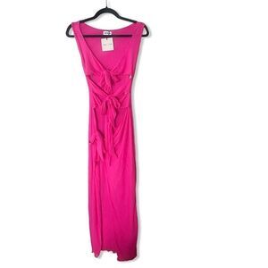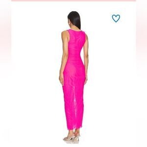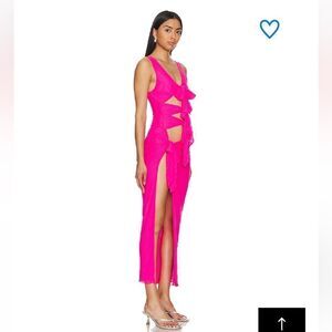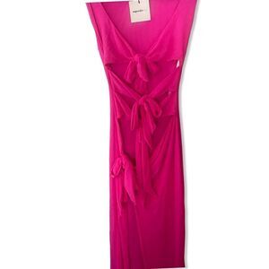 Superdown Nelly sheer maxi dress hot pink cut out mesh tie midi Revolve XS