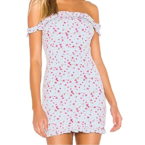 Superdown Cruz Blue Floral Off The Shoulder Mini Dress Size XS