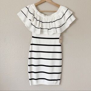 Superdown Revolve Body Con Striped Knit Off the the Shoulder Ruffle Mini Dress
