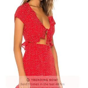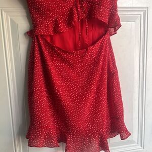 Superdown Red Dress - Cute Skater Cut Out Dress - Mini - Size Small - NWT - Red Small White Polka Dots - Tie Front