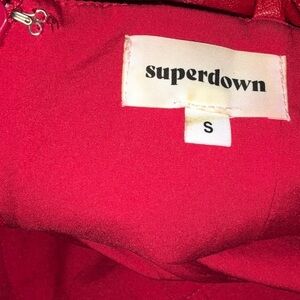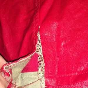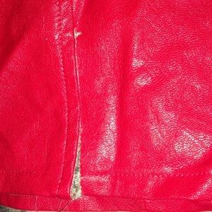 Superdown Revolve brand Becca Red Faux Leather Mini Dress, size small S. Good used condition. Fabric tear needs repaired, front. Self: 100% poly with polyurethane coating
