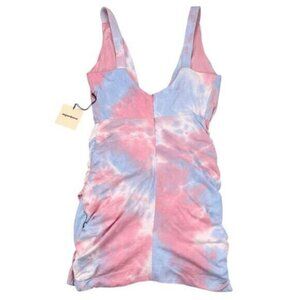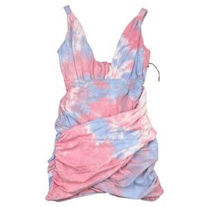 Superdown Revolve Georgie Ruched Mini Dress in Pink Multi Tie Dye Size Small
