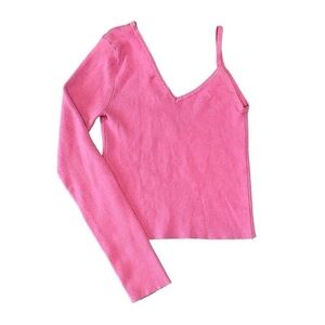Superdown Revolve One Shoulder V-Neck Knit Crop Sweater. Barbie Pink XS #915