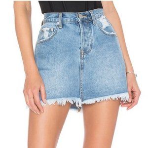 Superdown Revolve Tara Denim Mini Skirt in Mid Wash Blue 27