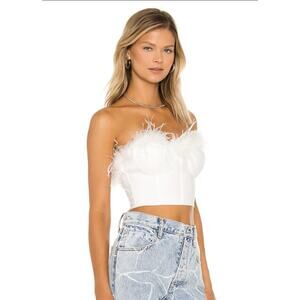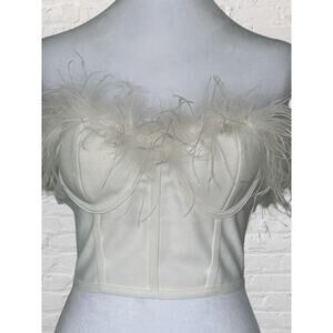 Superdown Revolve White Corset Top Feather Detail Sz S Going Out Bachelorette