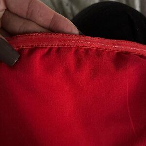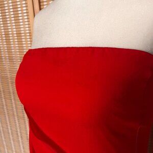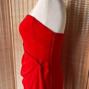 Superdown Revolve strapless mini dress with side zipper and draping in the front. Top of bust is stretchy with rubber to hold it in place.