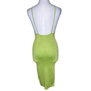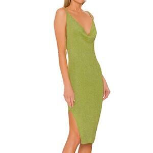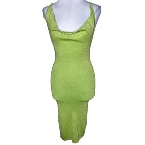 Superdown Sabrina Knit Midi Dress XS Green Metallic Party Cocktail Draped Neck