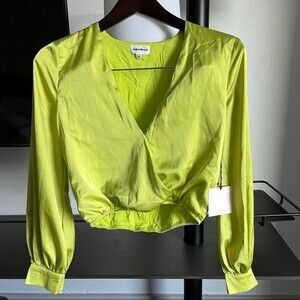 Superdown Satin Cropped Surplice Blouse in Like Green XS NWT