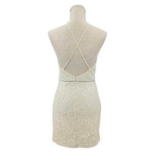 Superdown Shea Lace Dress Ivory Women's M Bodycon Mini Halter Party Cocktail