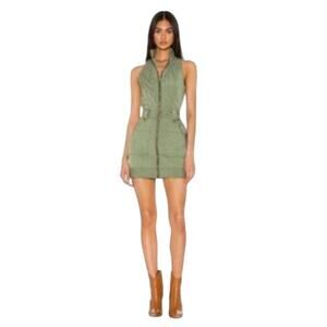 Superdown Sofia Sleeveless Zipper Front Belted Mini Dress Army Green, S NWOT