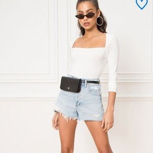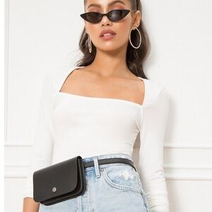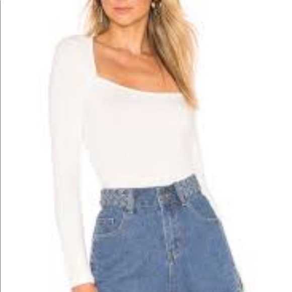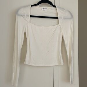 White square neck long sleeves jersey top. Not a bright white, white somewhat light cream. Soft jersey fabric. Worn 2x