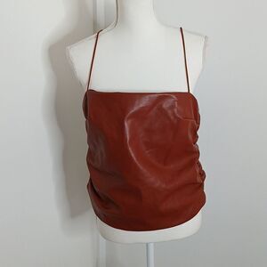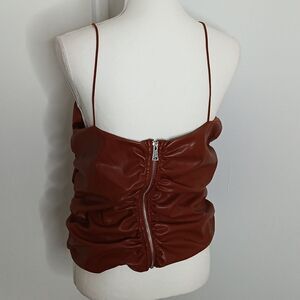 Superdown Stevie Ruched Faux Leather Brown Top XS
