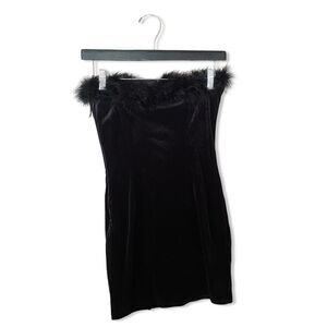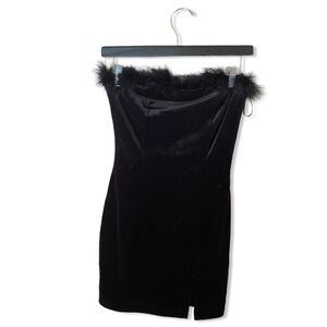 Superdown Symone mini dress feather trim black velvet strapless party Revolve