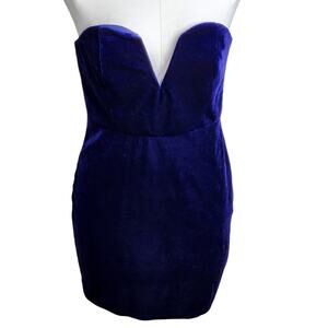 Superdown Tana Strapless Velvet Mini Dress in Indigo. Women's Size Medium.