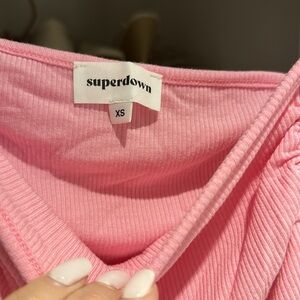 Superdown Tank Top - Pink. Never been worn. Sides are ruched, have to wear with sticky bra or without a bra so bra doesn’t show on the sides (see pictures)