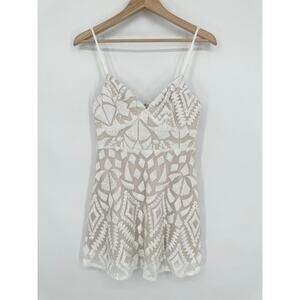 Superdown Tiff Mini Dress Sequin Lace V-Neck Spaghetti Strap Bridal White