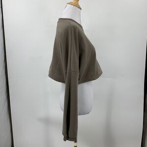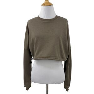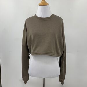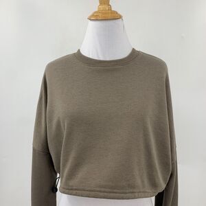 Superdown Top Womens XS Extra Small Taupe Drop Shoulder Cropped Boxy Bungee Hem