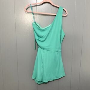 Superdown Turquoise Aimey One Shoulder Side Cut-out Ruched Summer Party Romper L