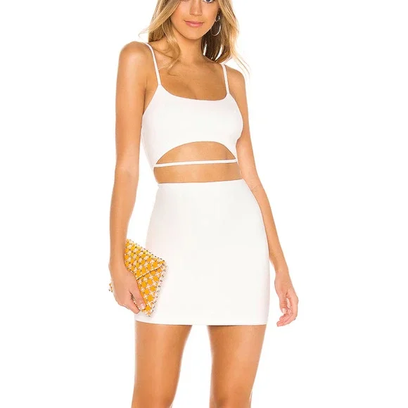 Superdown White Bodycon Mini Dress MEDIUM Club Cutout Cotton Revolve $68 NEW