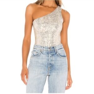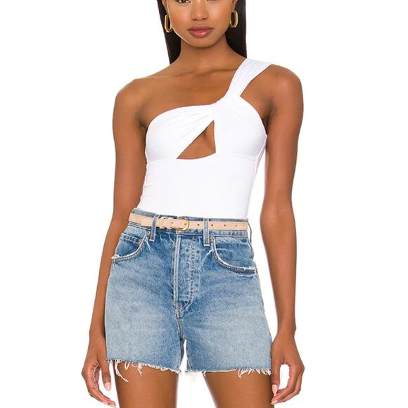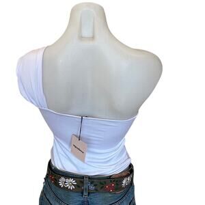 Superdown White One Shoulder Bodysuit Top SMALL Cut Out Revolve Jimena $58 NEW
