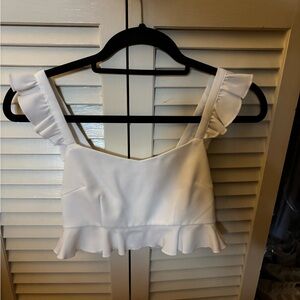 Stylish white crop top with ruffle details. Ideal for casual outings.