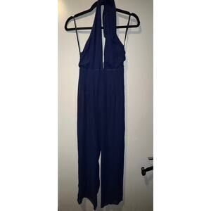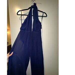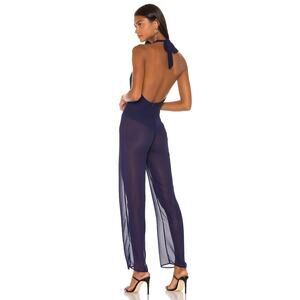 Superdown Womens Navy Kira Halter Jumpsuit with Sheer Overlay Back Zipper Size S