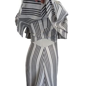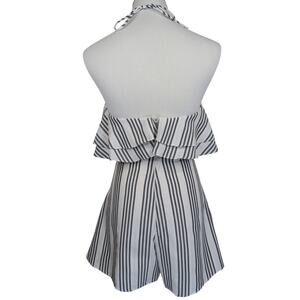 Superdown XS Romper Jamie Halter Stripe Ruffle White Side Cut Outs
