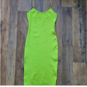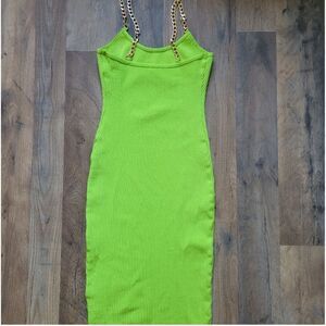Superdown Zoey Chain Strap Ribbed Bodycon Midi Dress Green Size Small