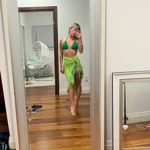 Superdown my beachy side green fringe skirt cover up pq crochet revolve nbd AFRM